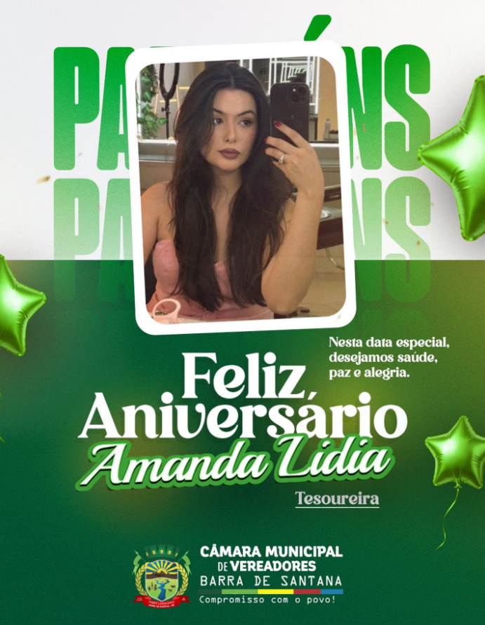 A Câmara Municipal de Barra de Santana deseja um feliz aniversário para Amanda Lidia.Desejamos muita saúde, alegria, realizações e ainda mais sucesso na sua jornada.