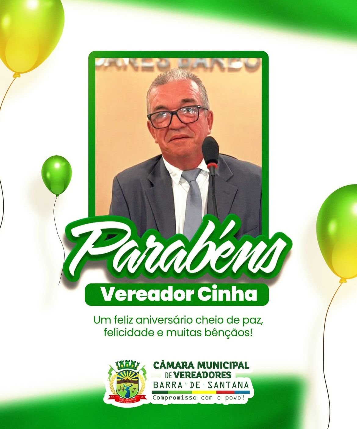 Em nome da Câmara Municipal de Barra de Santana, desejamos a você muita saúde, paz e felicidade. Que seu dia seja especial e cheio de alegria.